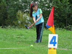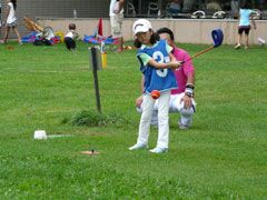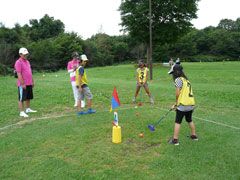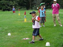スナッグゴルフを導入して3年目となる北海道北広島市で、第2回北広島スナッグゴル フ大会が開催され、残暑の晴天の下、市内の小学校から19名の児童たちが参加した。