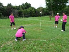 初心者も参加しての大会ではあったが、各組に随行した体育指導員のサポートによ り、円滑な進行となった。指導員の方々は谷口博之会長の指揮のもと、受付から用具 配布、そしてスコアラーに集計と、笑顔と温かさで子どもたちを応援した。