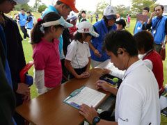 また、富岡高校ゴルフ部員のほか、富岡町の職員、そしてLPGAプロが多数参加し、 マーシャルやスコアラーなど、各組への随行などに汗を流し、町が一丸となっての大 会開催となった。