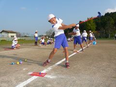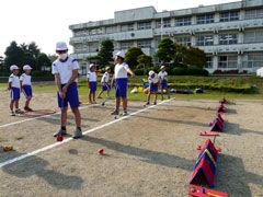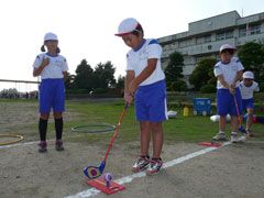 秋晴れの晴天の下、茨城県の常陸太田市立郡戸小学校で、スナッグゴルフ実技講習が 行われ、スポーツクラブを選択した4年生から6年生の20名が参加した。