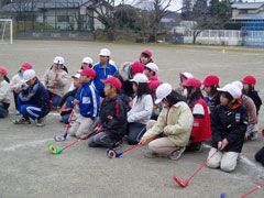 昨年の、「UBS日本ゴルフツアー選手権宍戸ヒルズ」における、社会貢献活動の一環 として計画された、スナッグゴルフ・スクールセットの寄贈・導入小学校のうち、静 ヒルズカントリークラブ近隣の、那珂市と常陸大宮市に導入された小学校で実技講習 会が、那珂市立多戸小学校を皮切りに始まった。