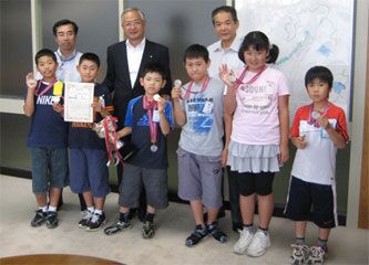 全国大会の翌週6月11日(木)に、森町立宮園小学校の選手6名が森町役場を訪れ、全国 大会準優勝の報告を村松藤雄町長と井上啓次郎教育長に行った。