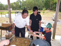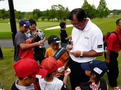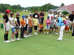 参加者は4つのグループに分かれ、各組には日本女子プロゴルフ協会の講師プロが付 き、午前中はパット、アプローチ、ショットの練習、そしてランチタイムはバーベ キューエリアに移動し、中嶋常幸が焼きそばのコーナーを担当して、子どもたちに振 る舞うなど、大会ホストプロとしての傍ら、要所で子どもたちとの触れ合いも積極的 に行った。