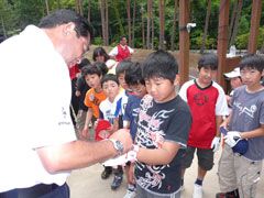大会が終わっても、中嶋に並ぶ子どもたちのサイン待ちの列は途切れることがなく、 自ら持参したサインペンで、一人ひとりに丁寧にサインと日付を書き続けた。