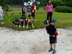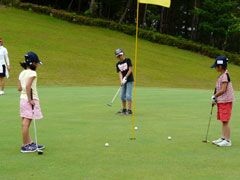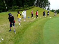 パー3コースは、本コースと同じ芝と同じ設計コンセプトの本格コースで、ゴルフ経 験の少ない児童たちは、グリーン上でのパットに苦戦したが、それ以上にゴルフを満 喫した。