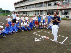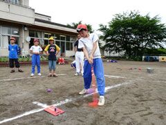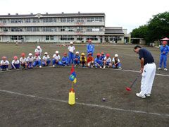 野球をしている児童が多いせいか、飲み込みが早く、すぐにショットができるように なり、最後のフルショットでは、フォームは野球のスイングながら、見事に遠くに ボールを飛ばす光景も見られた。
