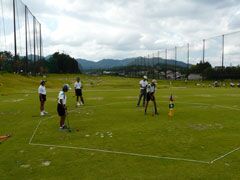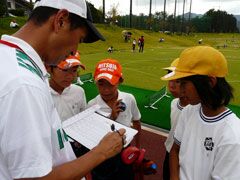 東広島市では、地元の枝広美子プロの尽力により、市内の全ての小学校にスナッグゴ ルフが導入されており、活動している児童が増えつつあり、この大会も練習場の特設 コースだけではまわり切れないため、低学年はアプローチ練習場等の特設コースに振 り分けられての試合となった。