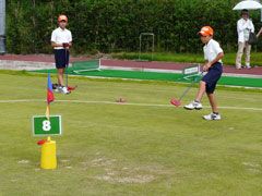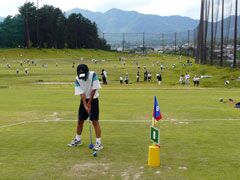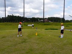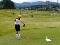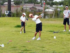会場は、広島カンツリー倶楽部八本松コース練習場の、スナッグゴルフ特設コースで 行われ、晴天の下で児童たちが元気よく競い合った。
