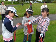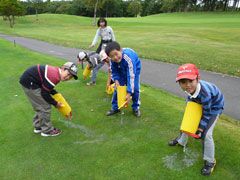 大会に参加したのは、北広島市内でスナッグゴルフを導入している小学校の児童など で、前日のANAオープン最終日は、プロ選手をティグラウンドに手をつないで導く、 キッズエスコート にも参加し、トーナメント観戦も堪能した。