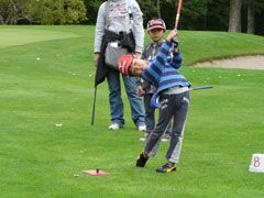 競技は、札幌北広島GCの西コースの1番ホールと2番ホールに特設された、スナッグゴ ルフコースで行われ、スタートホールでは自己紹介と握手、そして健闘を称え合って の握手も励行されたが、普段し慣れない握手に照れくさそうな子どもたちも多かっ た。