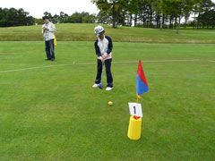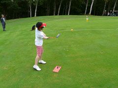 緊張の面持ちでスタートしていくと、フェアウェイに設定されたグリーンの傾斜に手 こずりながらも、緑豊かで、フカフカな芝生のうえで、参加した選手たちは気持ちよ くプレーして楽しんだ。