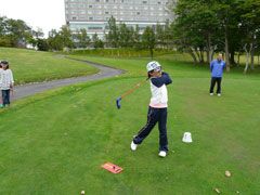 会場を提供してくれたのは、北広島市にある札幌北広島ゴルフ 倶楽部。 札幌北広島GCは、全国に100コース以上を有するPGM(パシフィックゴルフマネージメント株 式会社)が運営するコースの一つで、ジュニアゴルフの受け入れや取り組みにも積極的なゴルフ場 で、この日も大会で使用するコースが早めに解放できるように、事前に予約の調整を して頂き、また、コーススタッフは笑顔で地元の子どもたちを迎えてくれた。
