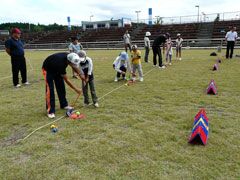 全国大会では上位入賞が定番の茨城県笠間市で、更なる底辺拡大を目的としたスナッグゴルフ体験会が、笠間市総合公園のサッカーグラウンドにて行われ、28名の親子が参加した。