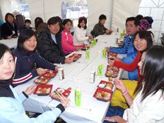 また、レッスン会後には、ジュニアたちと一緒にお弁当をほおばり、普段ではできな い触れ合いや会話を楽しんだ。