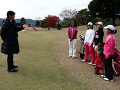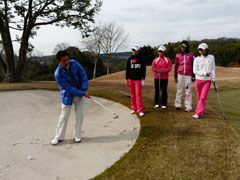 上級者向けレッスン会には、深堀圭一郎と髙橋竜彦が参加し、高等学校ゴルフ連盟な どから選抜されたジュニアたちを対象に、ティショットを打つ時の狙いや注意点、バ ンカーショットでのコツなどについて親切丁寧な指導が行われた。