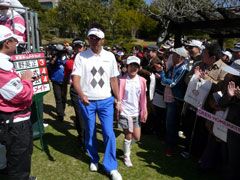 東建ホームメイトカップの最終日に、地元の桑名市内の小学生15名が参加しての、 キッズエスコートが実施され、ドキドキの緊張のなか、憧れのプロ選手と手を繋いで ティーイングラウンドに入場した。
