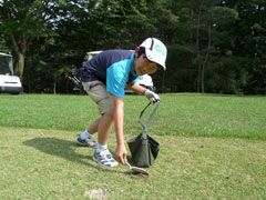 その同じ敷地内の東コースで、第6回小学生ゴルフ体験会と、第1回小中学生ゴルフ記 録会が行われ、18名の児童たちが参加した。