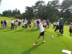 宍戸ヒルズと静ヒルズの近隣では、すでに多くの小学校がスナッグゴルフを導入して おり、今回は導入小学校を通じて参加募集を行い、宍戸ヒルズ会場では、定員の60組 に対して30組以上のキャンセル待ちが出る盛況ぶりで、静ヒルズでも45組が参加し た。
