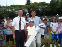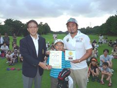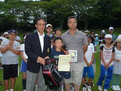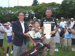 宍戸ヒルズ会場で優勝した、野村真司親子ペアの岩間第三小学校6年生の真司くん は、「3年間スナッグゴルフをやっていて、親子大会3回目の出場で初めて優勝できて うれしかった。これからは90ストローク以下でラウンドできるようにゴルフで頑張り ます。」と話しており、小学生最後のスナッグゴルフ大会で、やっとつかんだ栄光を 喜んでいた。