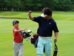 兄妹が力を合わせ相談しながらてプレーする姿にお父さんの利浩さんは、「ゴルフは お金持ちのスポーツだとか、お子さんをプロにするのですかと、言われることがよく あるが、家族のレクリエーションとしてゴルフを楽しんでいます。一緒にゴルフをす ることにより、道具のことやスイングの話など、親子の話題が増える。