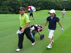 コース内への保護者の入場を制限するジュニア大会が多い中で、あえて保護者をコー ス内に入れ、更にキャディの役割も任せており、あちらこちらで、ほのぼのとした光 景が目に映る。
