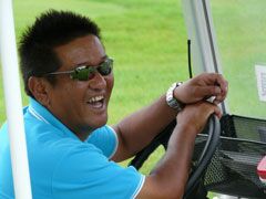 今回は、ホストプロの横尾要がスケジュールの調整がつかず来場できなかったが、篠 崎紀夫がその代役を務め、早朝からのコース準備、スタートホールではスコアカード を選手に手渡して笑顔で送り出し、最終組がホールアウトするまでコース内を巡回し 汗を流した。