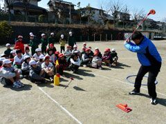 この小学校へのスナッグゴルフの導入は、昨年のス ナッグゴルフ対抗戦JGTOカップ全国大会における社会貢献活動の一環として、大 会収益から寄贈された用具で、全国大会への協賛は年々増加しており、子どもたちの ゴルフ環境を応援してくれる企業や個人の方々が、この活動を支えてくれている。