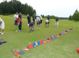 ゴルフ好きな腕自慢が集まったこともあり、ティショットもパッティングも真剣プレーで、それでありながら、あちらこちらで歓声や笑い声が響いた。また、9ホール546ヤードのパー27という、やや難しいセッティングであったが、優勝者は24ストロークというスコアでまわり、スナッグゴルフで競い合い、そして参加者同士の懇親も深められたようで、大人でも楽しめることを再確認させられた研修会となった。