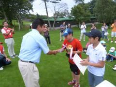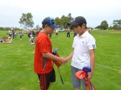 惜しくもプレーオフで敗れた夕太郎くんは、「とても緊張しました。1ホール目は ティショットを失敗したけど2打目でカバーできました。2ホール目は1ホール目より ももっと緊張しました。優勝できなかったのは残念だけど、とても楽しかったで す。」と爽やかに感想を話してくれた。