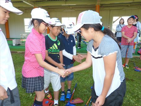 日本で初となる、スナッグゴルフのペア大会が、茨城県の笠間ゴルフ練習場で開催され、32組64名の小学生たちが、ぬけるような青空の下で、1つのボールを交互に打って競い合った。