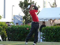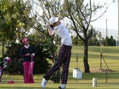 当時は父親の勧めでこの大会に自らエントリーして遠征。今回はこれまでの実績から 招待選手としての参加だったが、「他の試合と日程が重なっていたが、楽しそうだと 思い参加した。風が強くグリーンも難しかった。特に横風の計算は勉強になった」 と、惜しくも個人優勝は逃したものの、沖縄での大会での収穫は大きかったようだ。