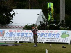 今年で第6回目となる、ハイビスカスカップ全国小中学生ゴルフ伊江島大会(伊江村主 催、社団法人日本ゴルフツアー機構など共催)が、沖縄県伊江村の 伊江島カントリー クラブで12月26日(月)に開催され、中学生31名、小学生53名の合計84名が参加した。