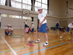 城南小学校では、PTA活動及び地域活動として、既にスナッグゴルフの活動が始まっ ており、三重地区予選会にも挑戦したり、大会で優勝する子が出始めるなど、早くも 実績を残しつつある。