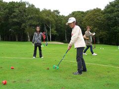 競技は、前日までの雨が朝までに止み、秋を感じさせる涼しさの中で行われ、微妙な 傾斜でフラッグの横を通り過ぎるパッティングに苦労しながらも、後半にはラインを 読み切ることができるようになり、パーやバーディを重ねて楽しんだ。