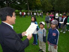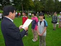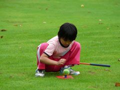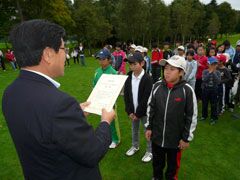 粂地くんが通う西部小学校は、ANAオープンが開催されている札幌ゴルフ倶楽部輪厚 コースに最も近い小学校で、2007年にスナッグゴルフを導入し、クラブ活動でスナッ グゴルフが導入されており、その練習の成果を発揮できたようだ。
