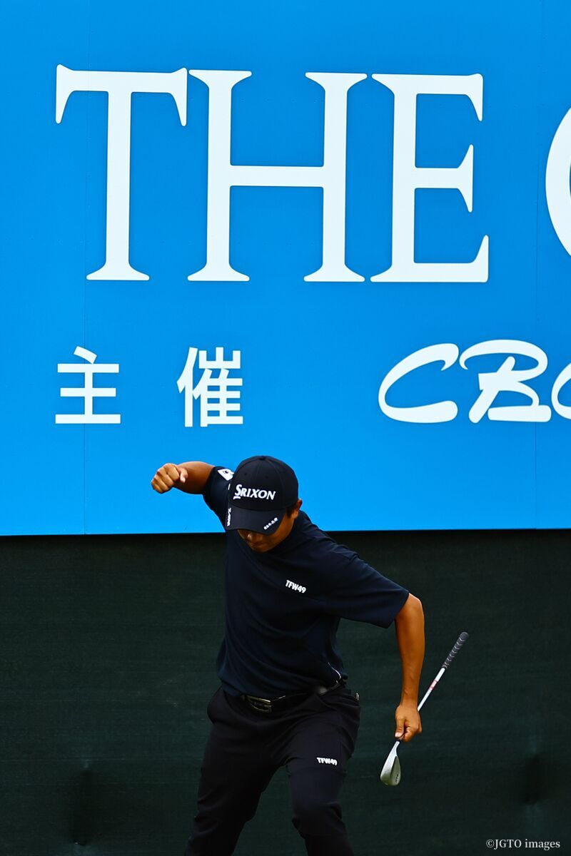 18番のチップインでガッツポーズ。岡田晃平「流れは自分に来ている」