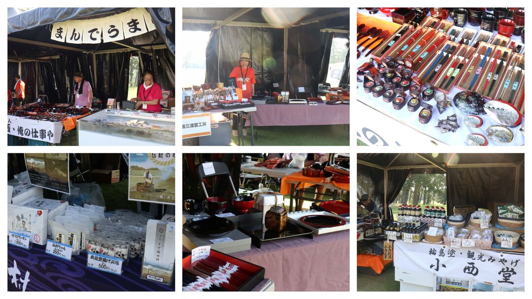 会場の能登カントリークラブに、週末出展も含めて以下14店の“輪島の朝市”が軒を連ねる。