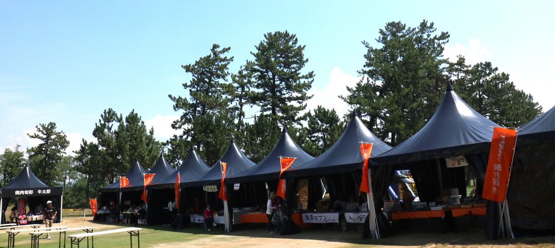 会場では、輪島の朝市のほか、コース近隣の珠洲市、羽咋市、珠洲市、能登町と、コース地元の宝達志水町や、地元グルメの飲食ブースを出展。