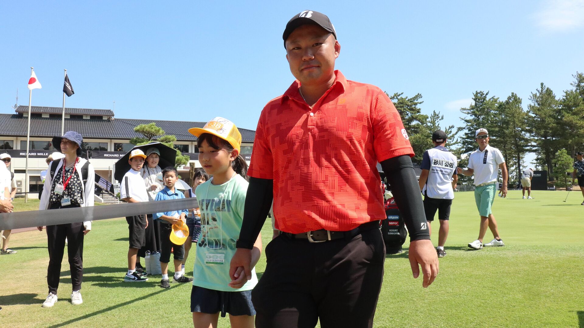 西山も、地元キッズと手と手をつないで和気あいあいと入場すると、1番から目を見張る第1打で沸かせた。
