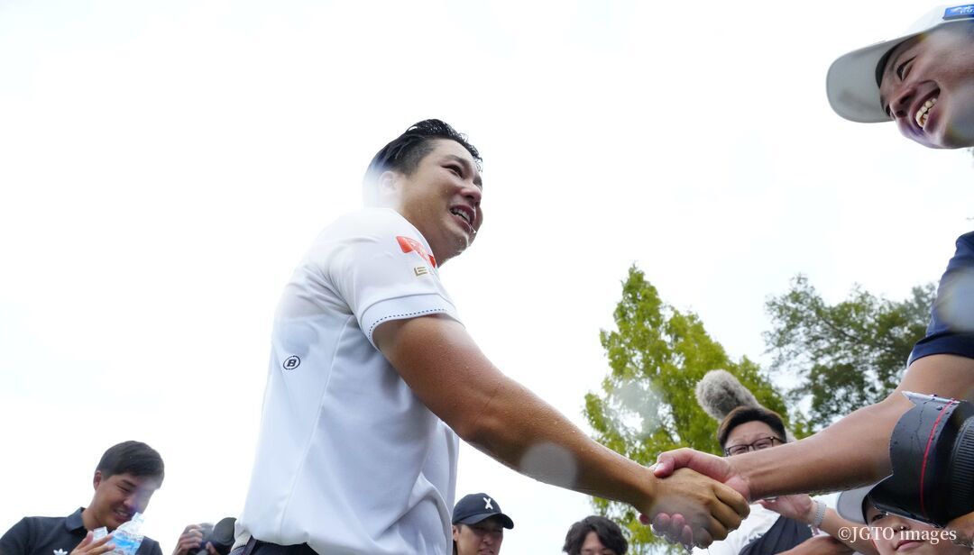 終わった直後は1打差だったが、しばらくして勝俣が、14番で2打目を入れるイーグルを奪ったため、すぐ3差がついた。