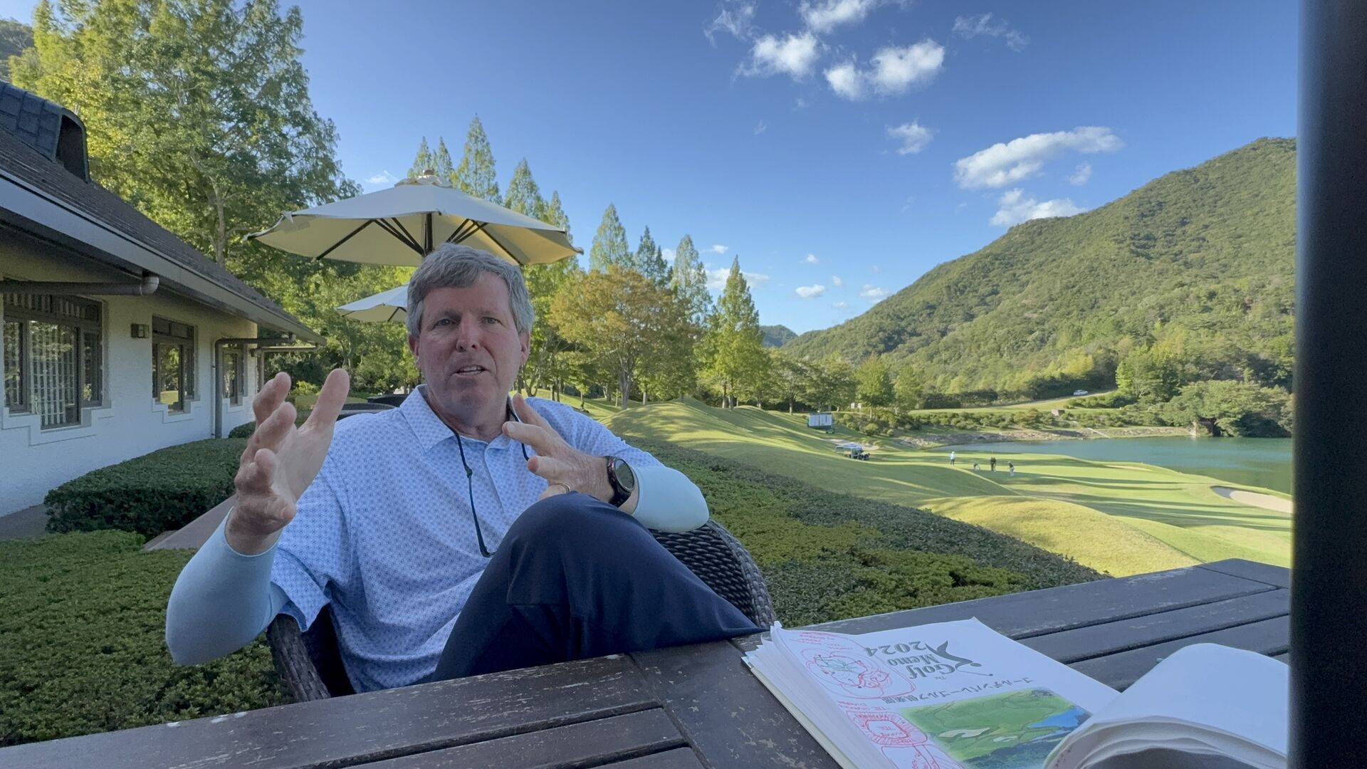 ブルース・チャールトン(Bruce Charlton)氏はジョーンズ事務所の下で44年間設計に携わっている言わばジョーンズJr氏が最も信頼する人物。先週、同じくR・T・ジョーンズJr氏が設計を手掛けたチェリーヒルズゴルフクラブで日本女子オープンゴルフ選手権を視察し、その足でゴールデンバレーゴルフ倶楽部に入った。コースを訪れるのは2019年以来6年ぶりのこと。選手らのプレーを見ながら18ホールを視察したチャールトン氏の目に久々のゴールデンバレーゴルフ倶楽部はどのように映ったのだろうか。