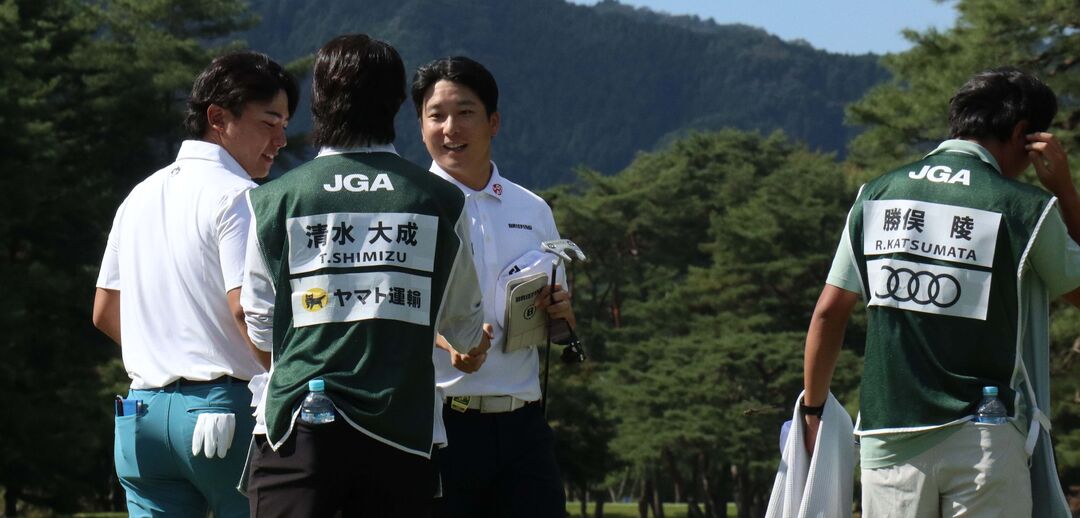 清水大成(しみず・たいせい)は、“夢の練ラン”に続いて予選2ラウンドも、日大先輩の勝俣陵(かつまた・りょう)とのプレーで、2人仲良く通算1アンダーで決勝へ。