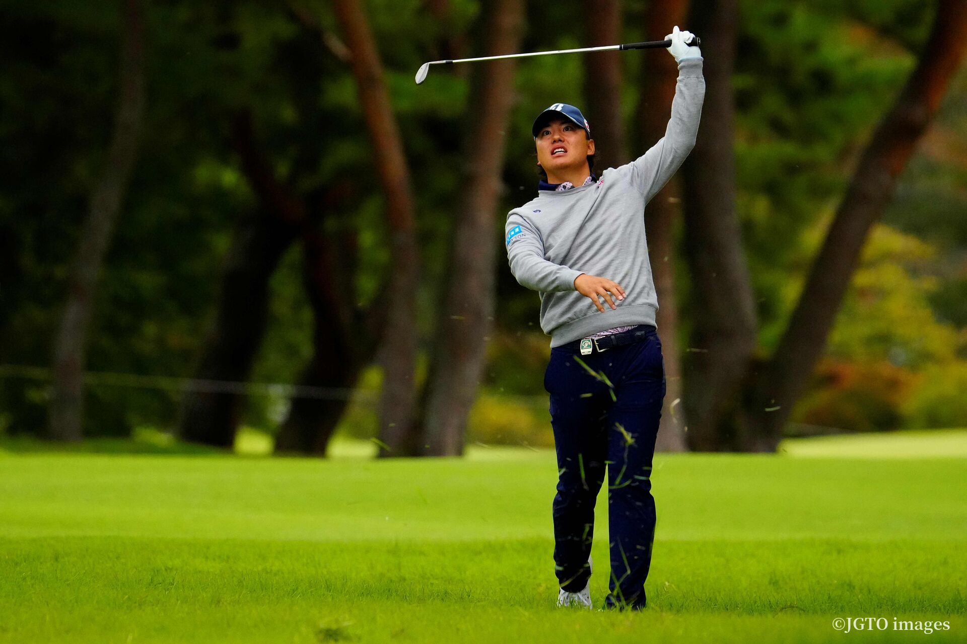 リードを守って入った後半も、左の林に入れた11番で花道からチップインバーディを奪うなど粘ったが、雨が強くなった17番で、5番と12番に続くこの日3つ目のダブルボギーで首位から陥落した。