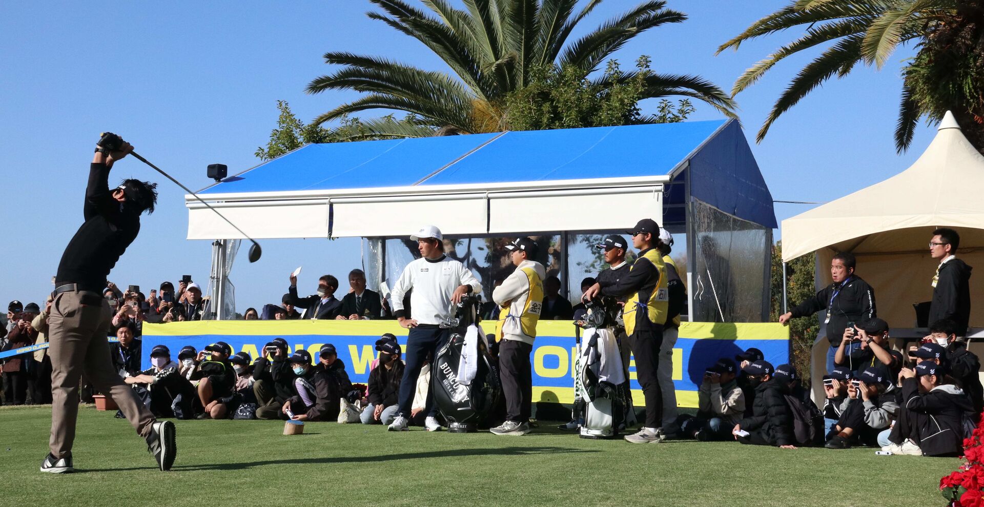 土曜日のプレー後には、出場選手によるジュニアクリニックや、明徳義塾高校と高知中央高校と、土佐塾高校のみなさんによるプロとのアプローチ対決「Best the Pro」が予定されるなど、週末の会場も、子どもたちの笑い声が絶えない。
