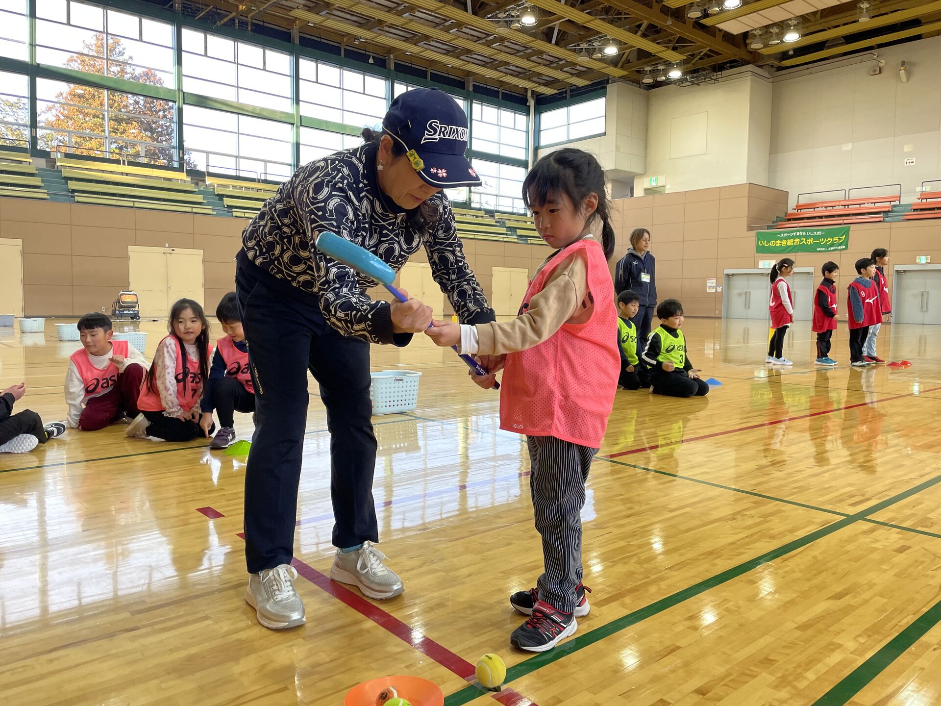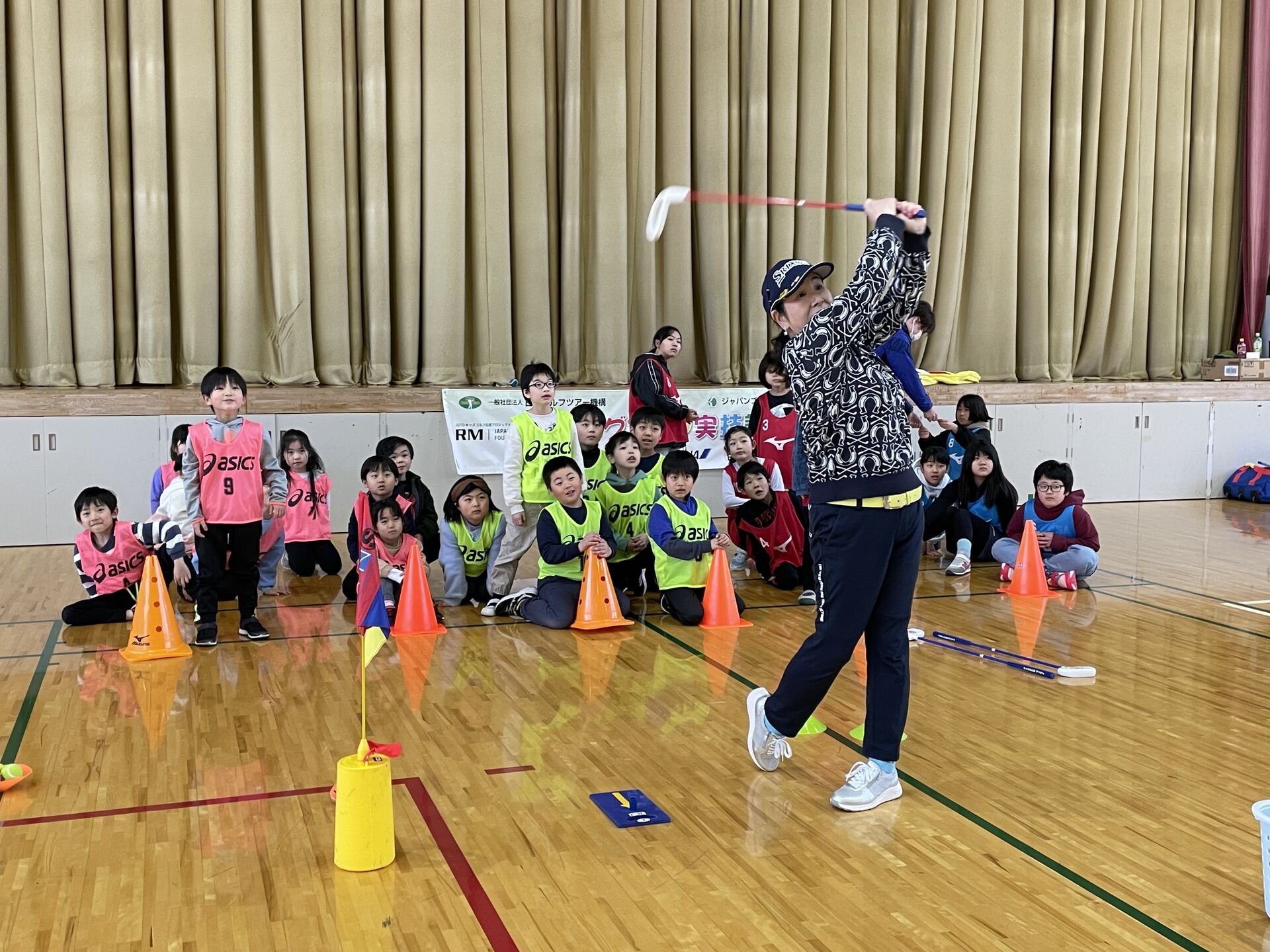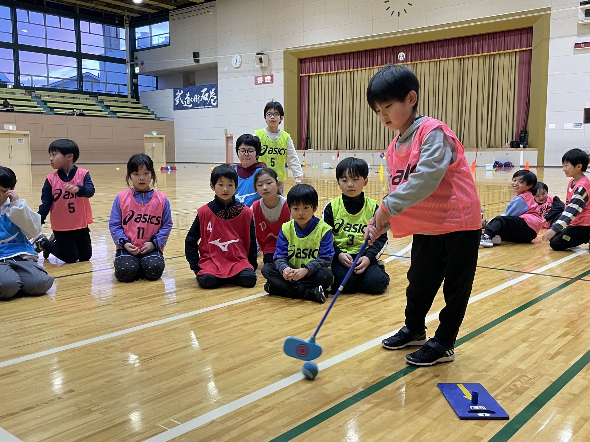 そんなご縁もあり、体育館を管理運営する、特定非営利活動法人石巻市スポーツ協会が、『キッズバラエティスポーツ教室』にゴルフを組んでくれたのだ。