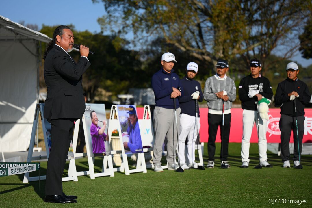 JGTOとジャパンゴルフツアー選手会はプロアマ日の8日、スタート前の1番ティで、故・ジャンボ尾崎氏の追悼セレモニーを行った。