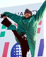 ごろごろと転がったあとにすぐ立ち上がり、見事な開脚ポーズで身体の柔らかさを見せつけた。