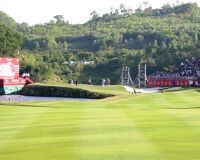 チーム・ジャパンはこの日、大勢の地元日本人ギャラリーの声援を背に出だしの1番パー4から今田が幸先良いバーディスタートを切った。続く3番パー5でも今田は今日2つ目のバーディパットをねじ込んだが、その後谷口、今田ともにバーディを奪えず前半のチームスコアは34と伸び悩んだ。一方、昨日2位のドイツ、オーストラリアに4打差をつけトータル17アンダーと大きく引き離したチーム・スペインはこの日も好調で7番パー5ではイーグルを奪い前半32とさらにスコアを伸ばしていく。インコースに入ってチーム・ジャパンはフォアボールで打ってはいけないボギーを10番パー4でついに出してしまう。この時点でトップのスペインとは10打差ついてしまった。他チームが続々とスコアを伸ばす中、その後もなかなかバーディが奪えない。「4番で二人とも短いパットを外して、5番、6番、そして7番のパー5でも二人ともバーディが取れなかったので空気も悪くなってきましたね。谷口さんが11番でいいバーディを取ってくれて、良い方向に行ってくれるかなって思いきやなかなかその後も取れなかったですね。」と今田が振り返る。