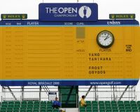 全英オープンと言えばギャラリースタンドと言われるぐらい18番グリーンサイドの巨大なギャラリースタンドはいつも見るだけで圧倒される。両サイドに設置された18番グリーンのギャラリースタンドだけで約8000人のギャラリーが観戦できる。それでも各日早い時間帯に満席になってしまう。また、クラレット・ジャグの優勝トロフィと並んで全英オープンの象徴ともいえるものが18番の巨大なギャラリースタンドの頂上の更に上にそびえ立つ“イエロー・マンモス・スコアボード“だ。大会のオフィシャル・タイマーのロレックスもこのボードに埋め込まれており、上位の選手が入れ替わるたびに人力で選手名とスコアを入れ替えている。ギャラリースタンドのギャラリーはこのボードの入れ替わりを見て時折、ため息や歓声の渦が18番グリンーン上に響き渡る。