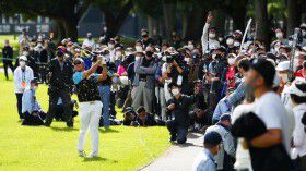 「上限(5000人)はありますけど、僕の組には2年前と同じくらいの人が来てくれた」と、松山英樹がボギーなしの「64」。